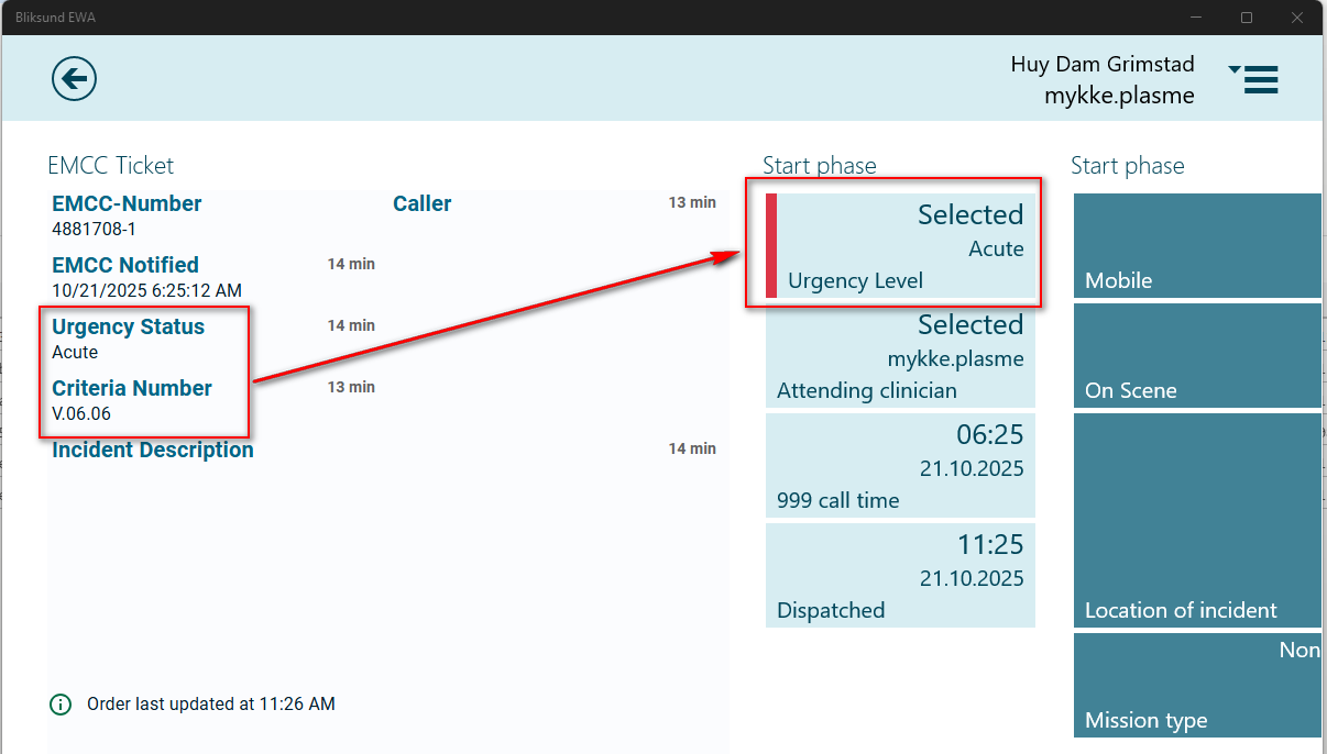 The Urgency Level information has been separated from the EOC ticket and is now editable independently through a new tile.